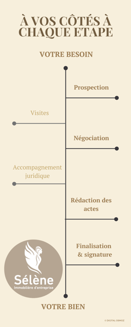 Sélène Immobilière d’entreprise prend en charge l’ensemble des démarches qui pour vous sont fastidieuses : prospection, visites, négociation, rédaction des actes et état des lieux. Nous vous conseillons au fur et à mesure de l’avancement de votre démarche avec un accompagnement juridique et avons à cœur de vous mener sereinement jusqu’à la finalisation et la signature.
